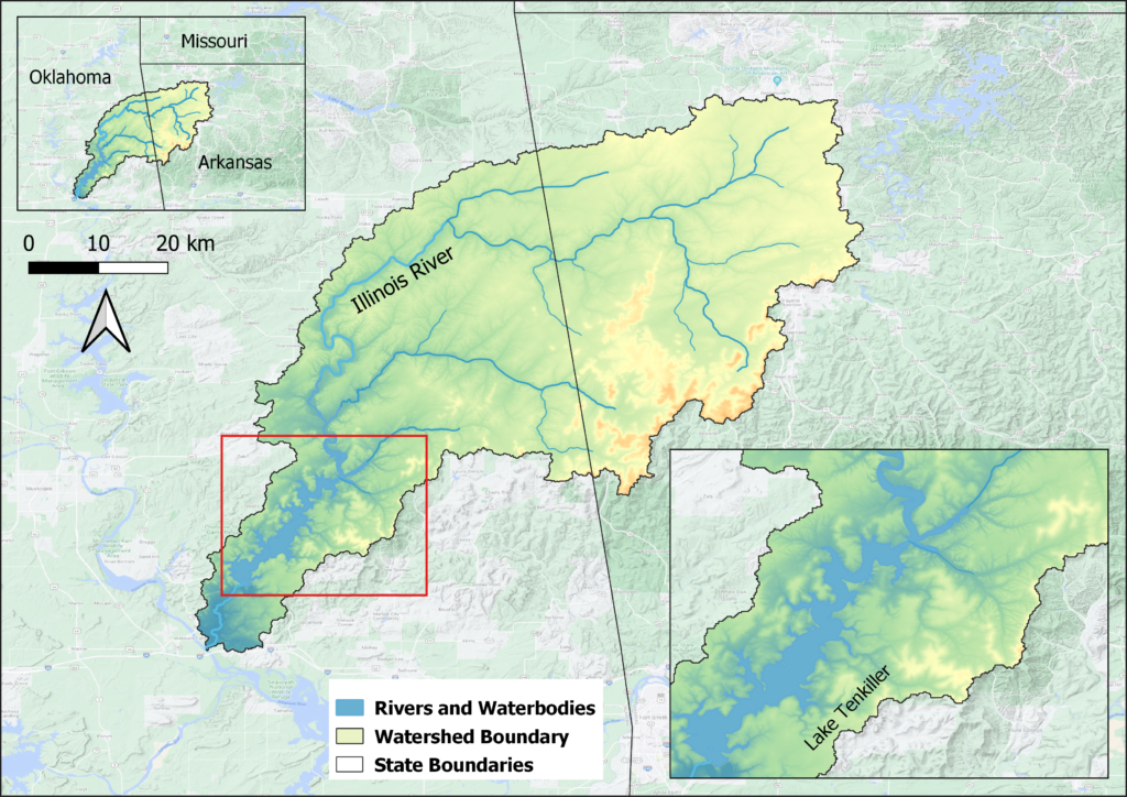 Senior consultants at DSI, LLC. have a legacy of bringing water quality expertise to hydrodynamic modeling. The Oklahoma Department of Environmental Quality ben- efited from our personnel’s contribution to a TMDL which was created through a linked watershed, hydrodynamic and water quality model for Tenkiller Ferry Lake. As part of the Illinois Basin, Tenkiller Ferry Lake is located in the Illinois River wa-tershed, which straddles the Oklahoma-Arkansas boundary and covers 1 million acres. Elevated nutrients made Tenkiller Ferry Lake a high-priority target for TMDL on Oklahoma’s 1998 303(d) list; our team members continued to collaborate on this project even after its completion in 2005.